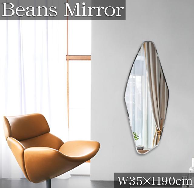ウォールミラー おしゃれ ウェーブミラー 壁掛け鏡 姿見 変形ミラー 韓国 ビーンズミラー インテリア 壁掛けミラー ニュアンス 吊り鏡 壁掛 おしゃれ 高精細 35×90cm SM-34