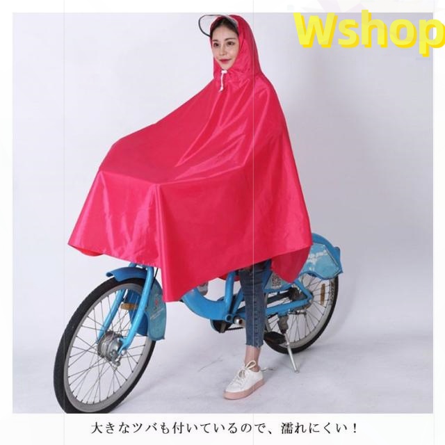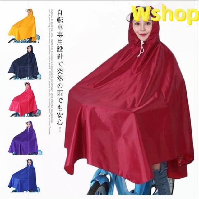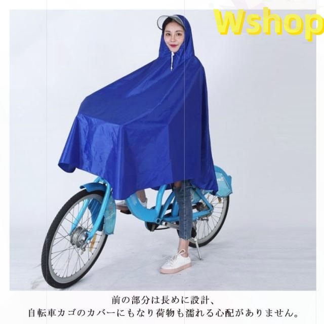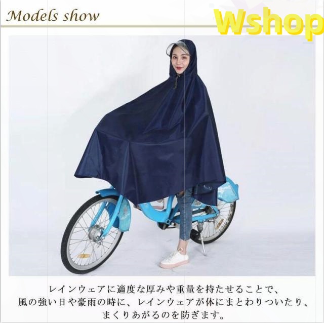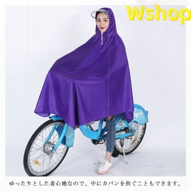| 自転車専用設計で突然の雨でも安心! レインウェアに適度な厚みや重量を持たせることで、風の強い日や豪雨の時に、レインウェアが体にまとわりついたり、まくりあがるのを防ぎます。 大きなツバも付いているので、濡れにくい! ゆったりとした着心地なので、中にカバンを担ぐこともできます。 前の部分は長めに設計、自転車カゴのカバーにもなり荷物も濡れる心配がありません。 男女兼用フリーサイズのレインポンチョなのでご家族で着回しができるのも経済的です。 | |