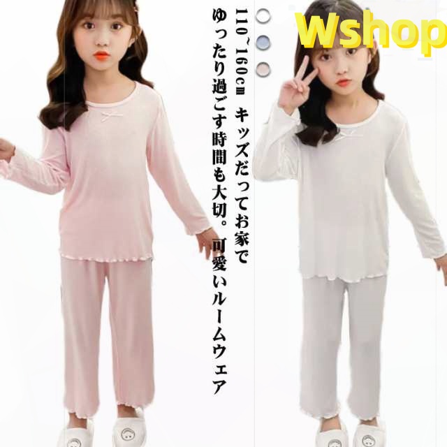 修学旅行 トップス キッズ 小学生 キッズ服 寝巻き ジュニア パジャマ 120 上下セット 下着 長袖 パンツ 肌着 幼稚園 110 かわいい 綿 女の子 春 部屋着 セットアップ ガールズ 160 ロングパンツ 秋 140 子供 保育園 150 130 送料無料 ルームウェア