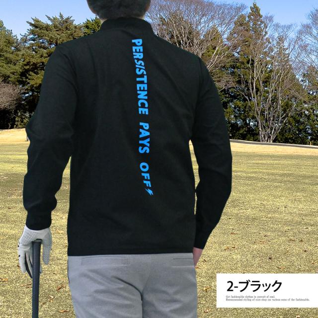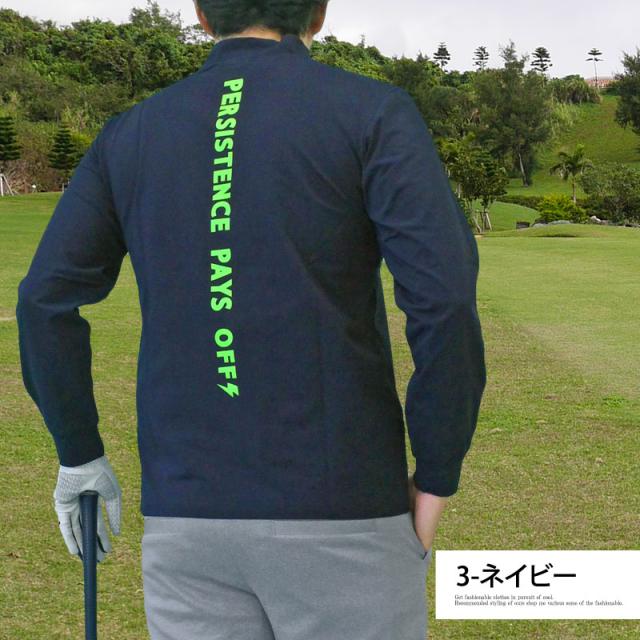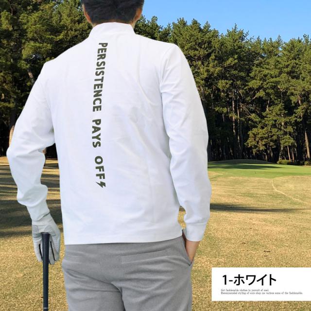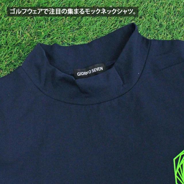 送料無料 ゴルフウェア メンズ モックネックシャツ GIORNO SEVEN ジョルノセブン 長袖 ハイネック トップス ポロシャツ ロゴバックプリント ストレッチ おしゃれ 春夏 秋冬 ゆうパケ