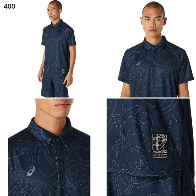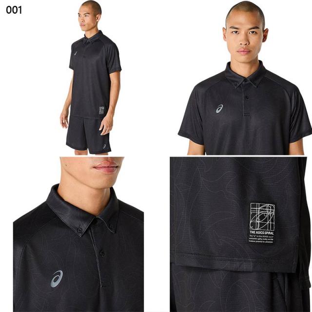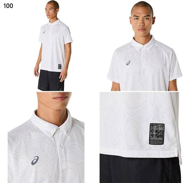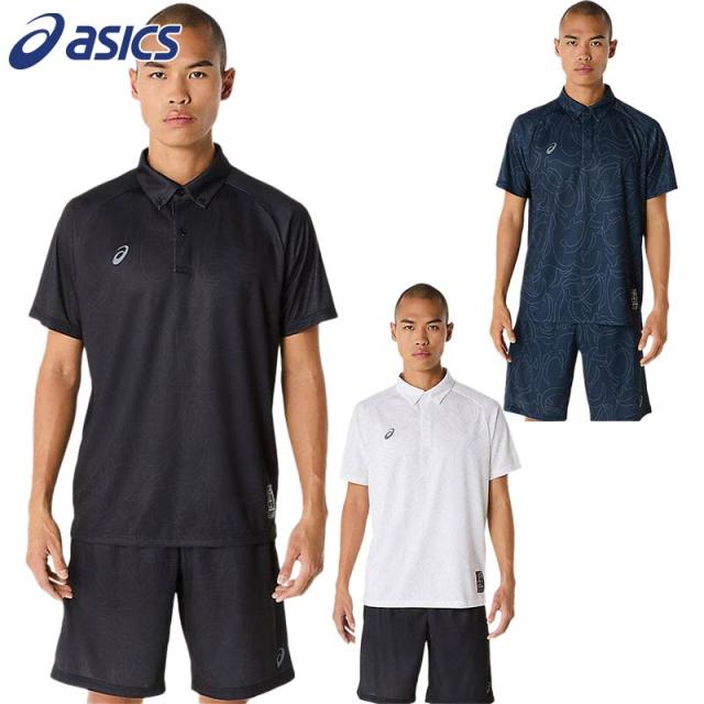 アシックス メンズ ドライグラフィックボタンダウンポロシャツ アパレル トレーニング ウェア トップス 半袖 吸汗速乾 運動 スポーツ ホワイト 白 ブラック 黒 ネイビー 送料無料 asics 2031E992