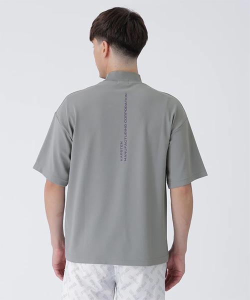 汗ジミを軽減して快適に着用できる、Wメッシュアセイヤーン半袖ハイネックカットソー。