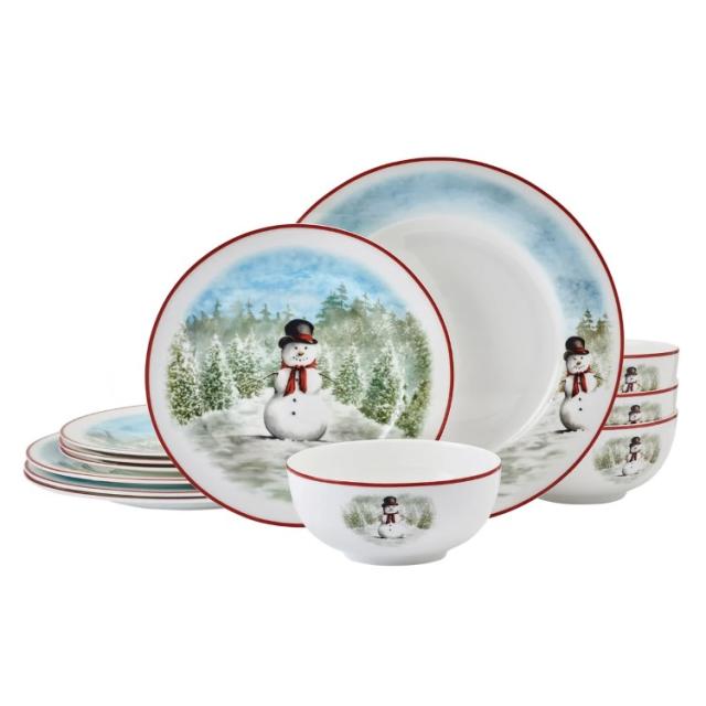 【お取り寄せ商品】【アメリカコストコ品】ミカサ スノーマン エンチャントメント ボーンチャイナ ディナーウェア 12 ピースセット Mikasa Snowman Enchantment 12-Piece Bone China Dinnerware Set