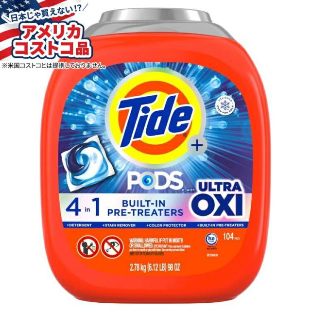【お取り寄せ商品】【アメリカコストコ品】タイドポッド ウルトラオキシ洗濯洗剤ポッド 104 個入り Tide Pods with Ultra Oxi Laundry Detergent Pods, 104-count