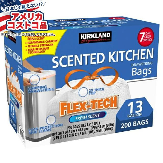 【お取り寄せ商品】【アメリカコストコ品】カークランド シグネチャー フレックステック 13 ガロン 香り付きキッチンゴミ袋 200 枚入り Kirkland Signature Flex-Tech 13-Gallon Scented Kitchen Trash Bags, 200-count