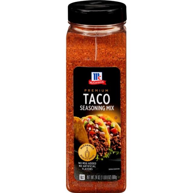 タマネギ、ニンニク、チリペッパー、オレガノなど、南西部の調味料をブレンドしたタコスミックス。このタコスミックスは、タコスに味付けするのに十分な辛さとスパイスがありながら、誰もが満足できるほどマイルドです。牛ひき肉や七面鳥にふりかけてください。パントリーにある 24 オンスの大きな容器は、毎週の家族のタコスナイトに便利です。チキンフィンガー、ハンバーガー、タマレパイ、ディップなどに南西部の風味を加えるのに最適です。