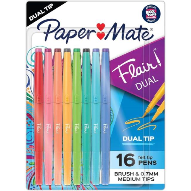 【お取り寄せ商品】ペーパーメイト フレアデュアルフェルトチップペン 16色 Paper Mate Flair DUAL Felt Tip Pens, Brush and Medium Tips, Assorted Colors, 16 Count