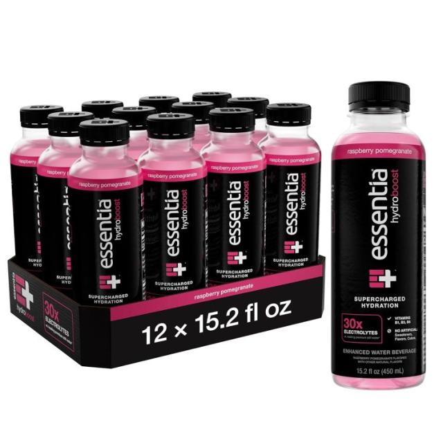 新しいエッセンシア ハイドロブースト 12 パック: 最も必要なときにさらなる活力を与える、スーパーチャージされた毎日の水分補給の 15.2 液量オンス (450 mL) ボトル 12 本。