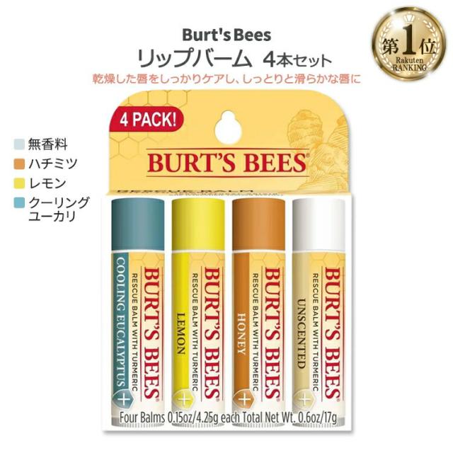 【お取り寄せ商品】バーツビーズ レスキュー リップバーム 4本セット 各4.25g (0.15oz) Burt's Bees Rescue Lip Balm リップクリーム