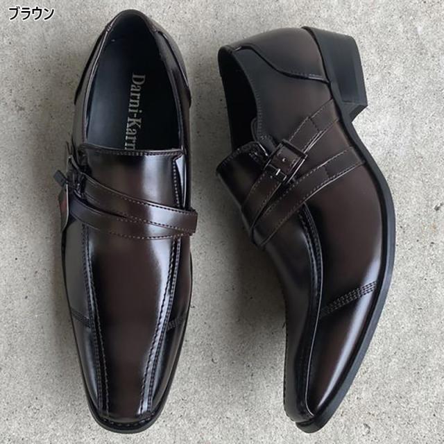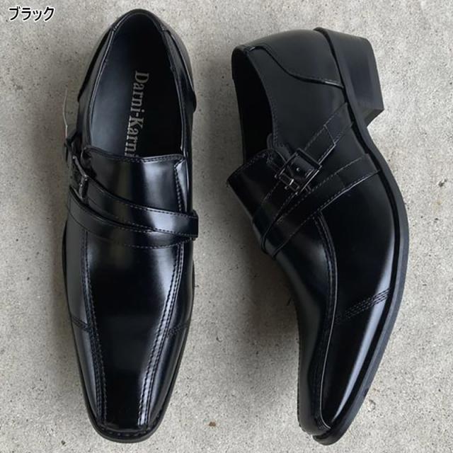 ダーニカーニ メンズ ビジネス 靴 シューズ ビジネス 仕事 通勤 オフィス ロングノーズ スタイリッシュ ダブルベルト つま先あがり スリッポン ブラック 黒 ブラウン 茶色 送料無料 Darni Karni 732