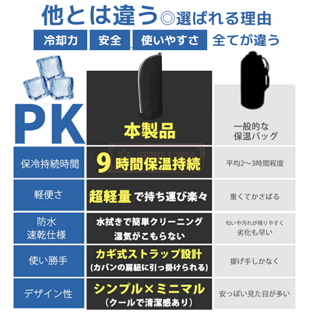 | 長時間9時間結露対策 | ◆9時間経っても氷が残るほど保冷性が高い。結露対策ができてカバンが濡れにくい。アルミペットボトルホルダー 。ペットボトルケース保冷。ペットボトル 保冷 。 |