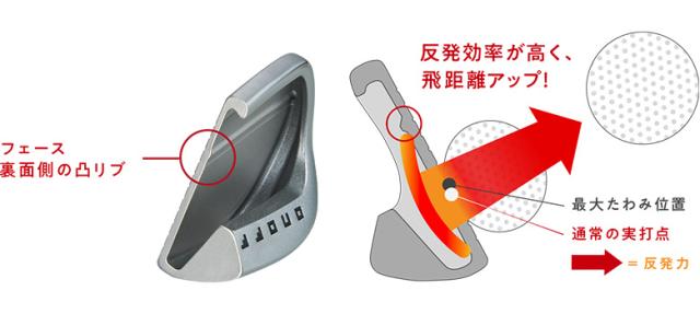 フェースの最大たわみ位置を通常の打点付近に移動させることで反発力を向上させた。