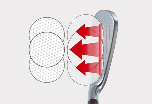 ボールを強く押し出し、更なる飛距離アップを実現。トップ気味のオフセンターヒットでの飛距離ロスも低減。