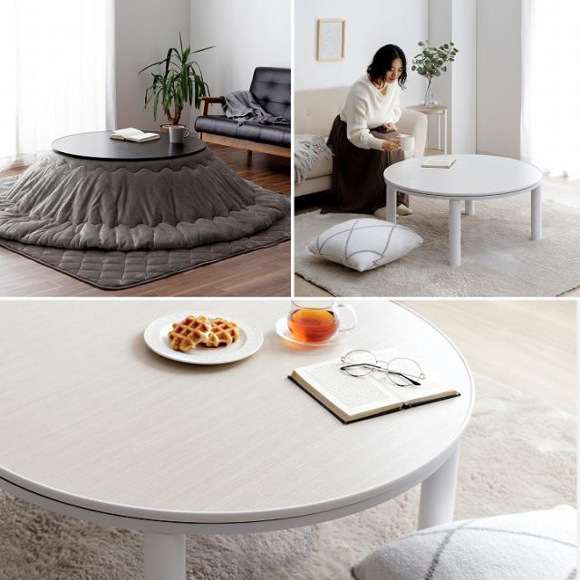 【クリアランスセール 】こたつテーブル こたつ テーブル 円形 「 カジュアルこたつ台 」 90cm ホワイト ブラック 新生活 一人暮らし 丸 リバーシブル オールシーズン センターテーブル