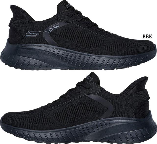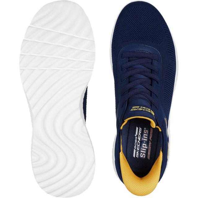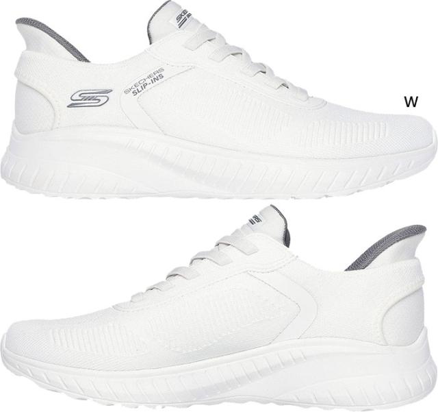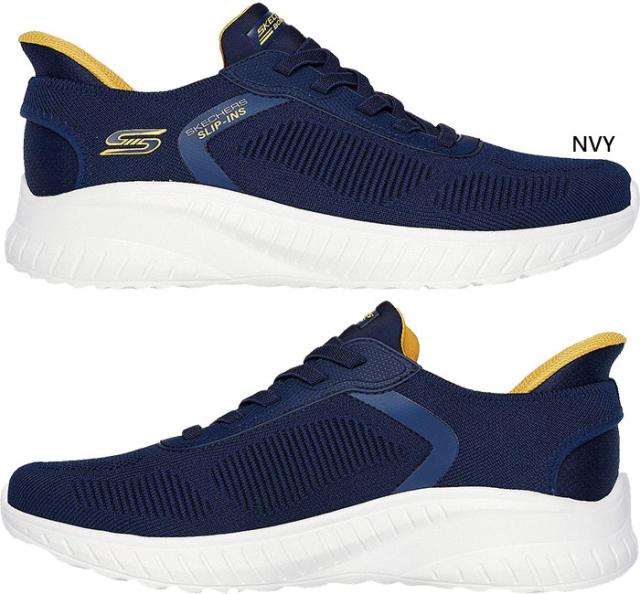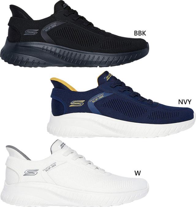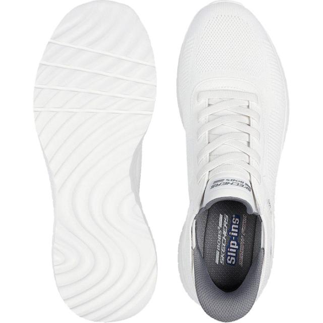 ワイド幅 スケッチャーズ メンズ スリップインズ ボブス スポート スクワッド カオス ソリッド ステップ スニーカー ハンズフリーシューズ 紐靴 ホワイト 白 ブラック 黒 ネイビー 送料無料 SKECHERS 118312W
