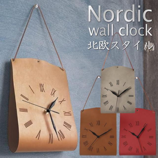【電池付き】掛け時計 ウォールクロック 壁掛け時計 北欧 シンプル アンティーク レトロ 7986691 置時計 PUレザー モダンインテリア 送料無料