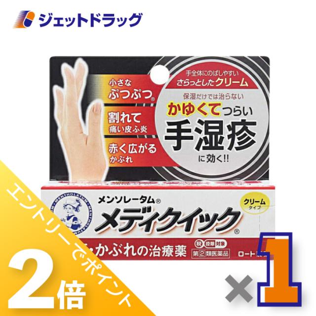 | 商品説明文 | 乾燥だけでなく、赤くはれたり炎症で皮がむけたりする手荒れが進行してしまった症状(手湿疹)は、治療が長引きやすい皮フ疾患のひとつです。「メンソレータムメディクイック」は、そのようなつらい手湿疹を改善する治療薬です。さらりと伸びてべたつかない、クリームタイプ。 |