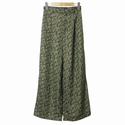 【中古】ディスコート Discoat 美品 総柄パンツ ワイド タック グリーン系 フリーサイズ X レディース