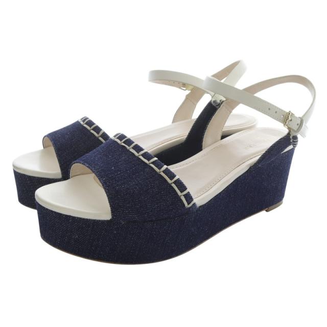 【中古】コールハーン デニムプラットフォームサンダル ストラップ 切替 6.5B 紺 ネイビー ベージュ /SR6 レディース