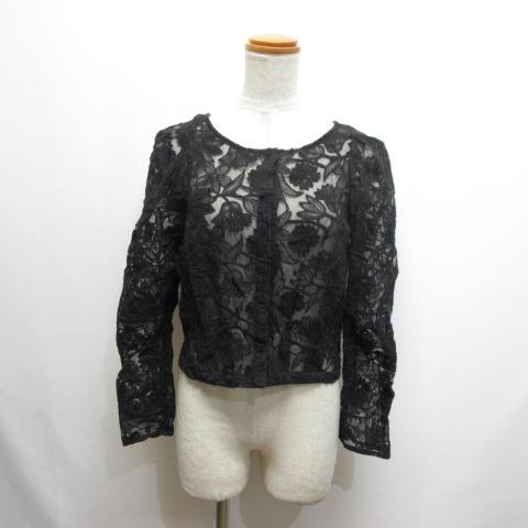【中古】ミスティック mystic 花柄 刺繍 パワーショルダー シアー ブラウス F 黒 ブラック 長袖 スナップボタン