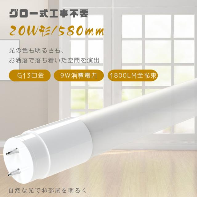 グロー式LED蛍光灯 T8 白色4000K 直管LEDランプ 580MM グロー式専用工事不要 直管型LED蛍光灯 LED蛍光管直管 LED蛍光灯 20W形 直管 58CM 20W型 LED直管蛍光灯 20W形 FL20ss 消費電力9W 1800lm 直管LED照明器具 20形 LED蛍光灯 直管 20型 G13口金 天井照明 店舗 学校 家庭