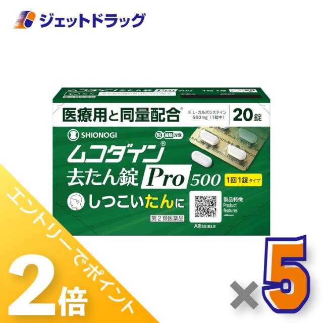 三太郎&お買い物ラリー≪3/23-3/25までP2%≫ムコダイン去たん錠Pro500 20錠 ×5個 たん 【第2類医薬品】