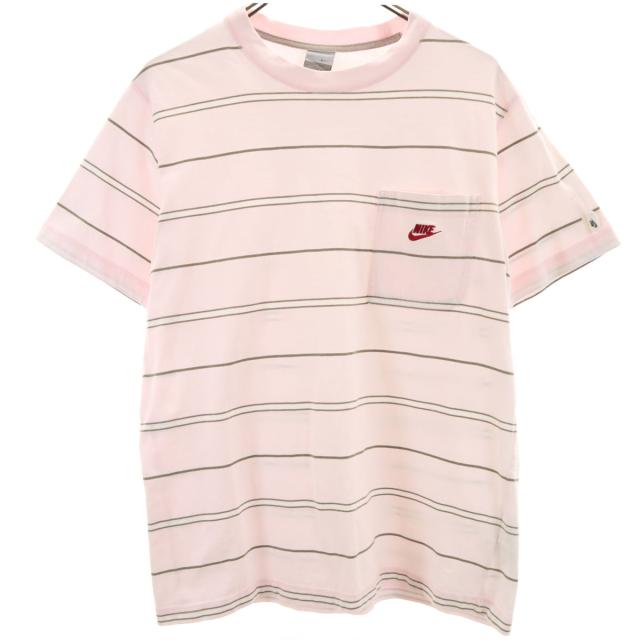 ナイキ ボーダー柄 半袖 Tシャツ L ピンク系 NIKE ポケT メンズ