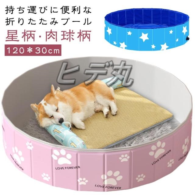 キッズ ペットプール 簡易 犬用プール プール 子供用プール 犬 ビニールプール 子供 120*30cm プール ベビープール ボールプール PVC 高耐久 折りたたみ プール 空気入れ不要 持ち運び 夏 庭 屋外用 水遊び プール コンパクト収納 暑さ対策 肉球柄 星柄
