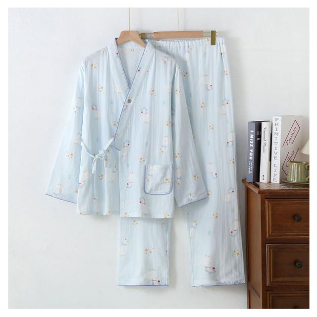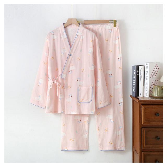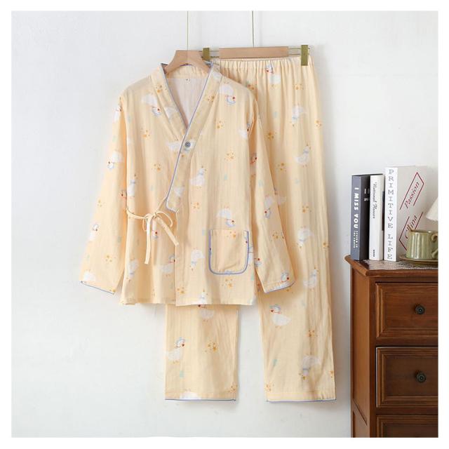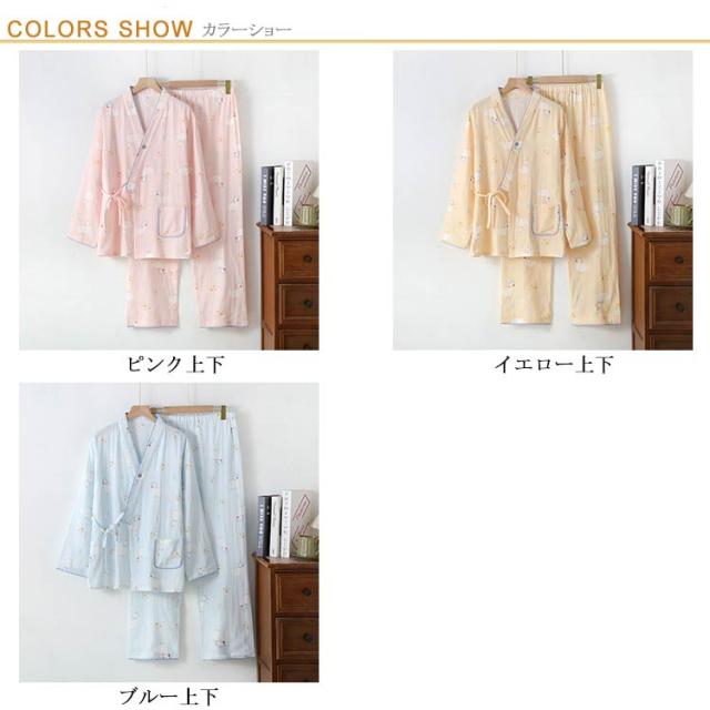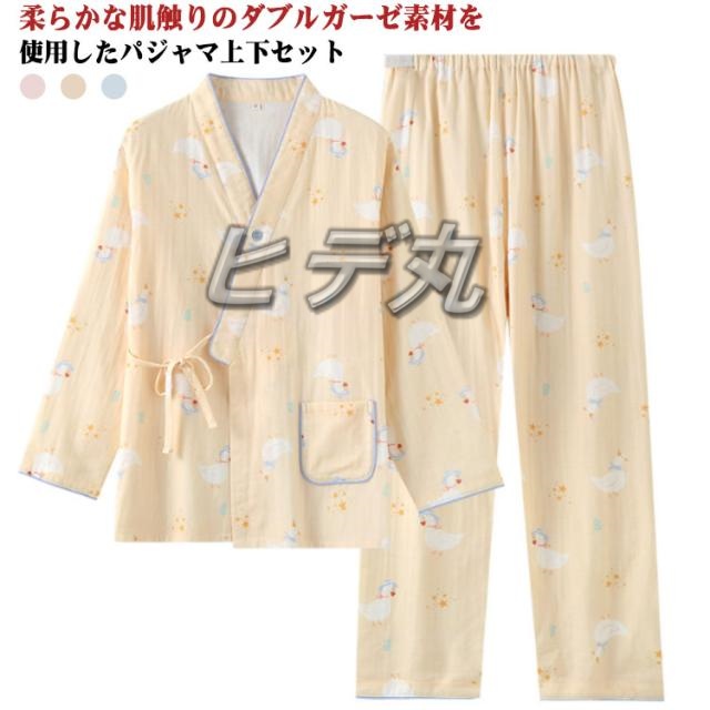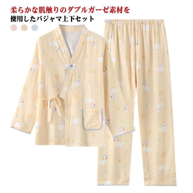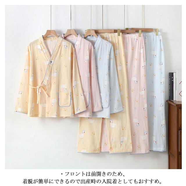 長袖 授乳服 和服 ルームウェア マタニティウェア 上下セット ロングパンツ ダブルガーゼ パジャマ 綿 コットン 産前 産後 授乳 春