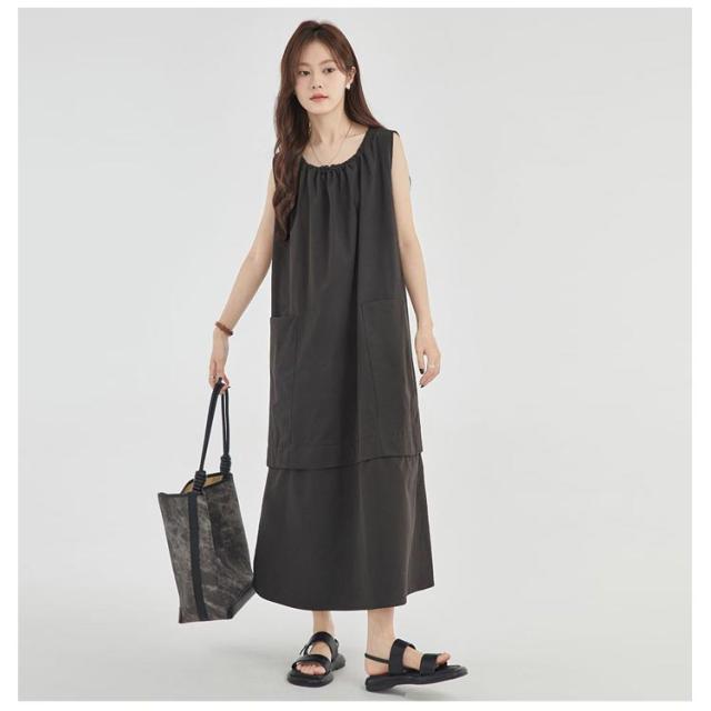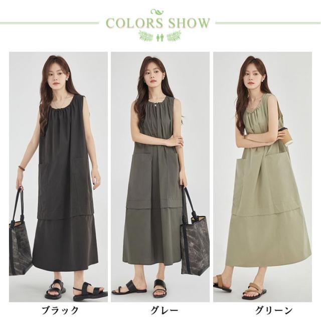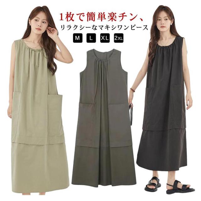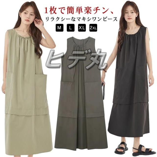 マキシワンピース 綿 低身長 ノースリーブ 夏 ワンピース ノースリーブ ノースリーブ ワンピース シンプル マキシ丈 Aライン ロングワンピース ワンピース 体型カバー 着痩せ シルエット ゆったり おしゃれ きれいめ 無地 母の日