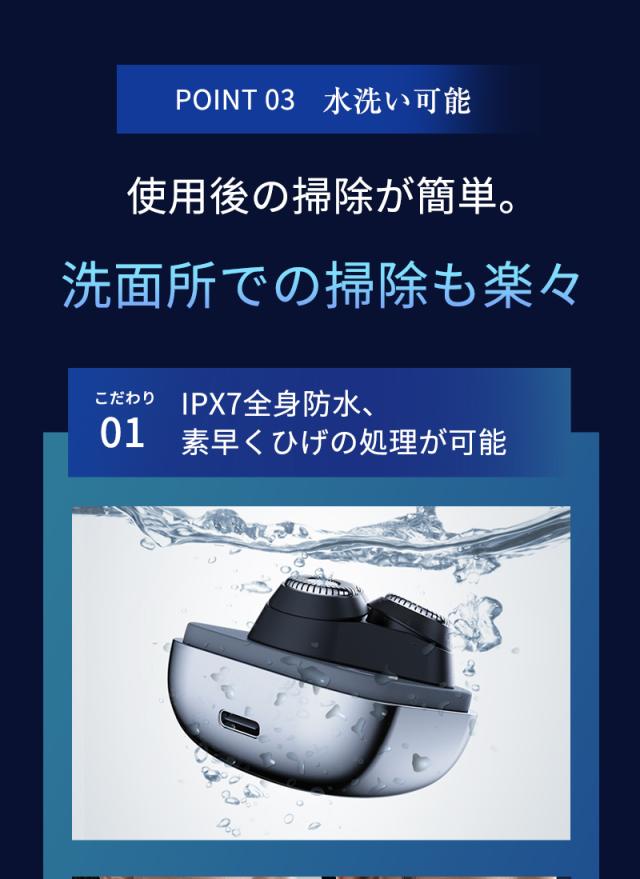 2025年新発売 髭剃り 電気シェーバー USB充電式 電動 丸洗い可能 IPX7 防水防滴 自動オフ 高性能 深剃り 回転刃 3枚刃 軽量 小型