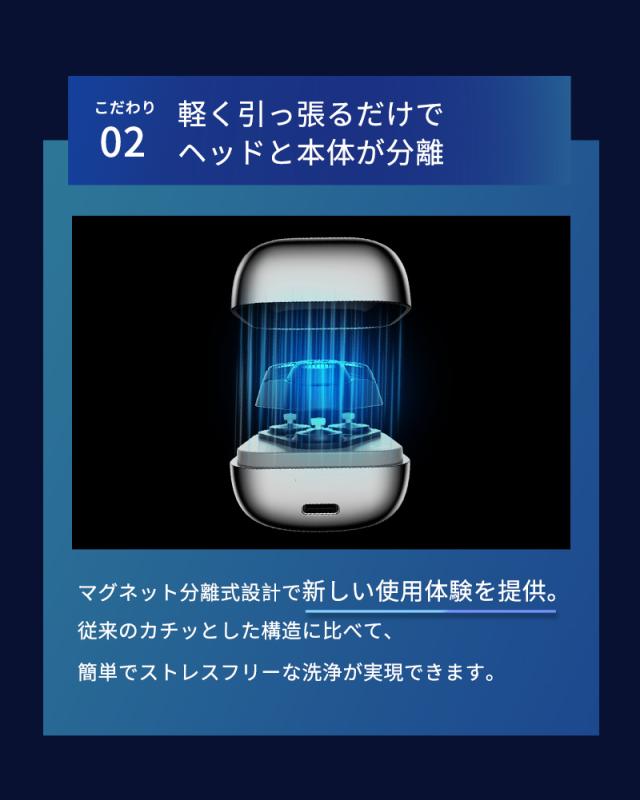 2、大容量電池が搭載され、満充電で毎日2分間使う場合、約30日使用可能。