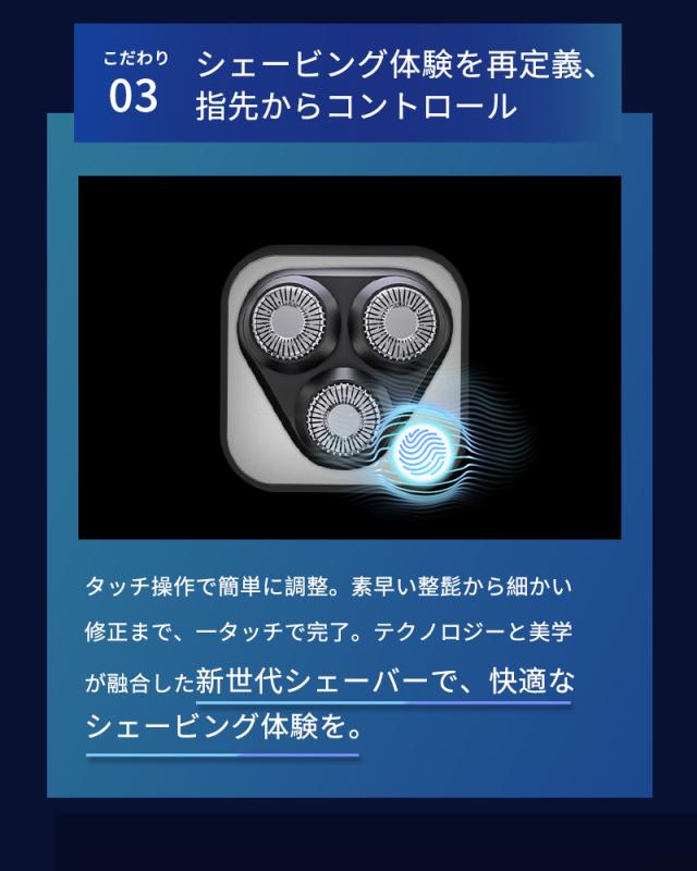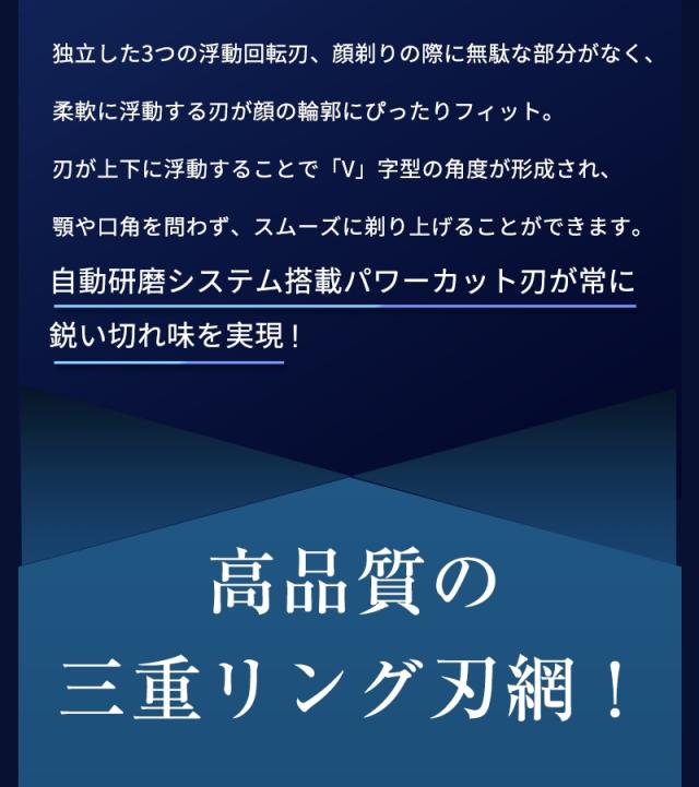 新開発の回転刃を搭載したこのシェーバーは、3枚の内刃が高速回転して、髭を引っかかることもなく切れ味が抜群です。さらに、フレキシブルに動く刃で、顔の曲線やもみあげ周りなどのデリケートな部分もしっかりと剃れます。