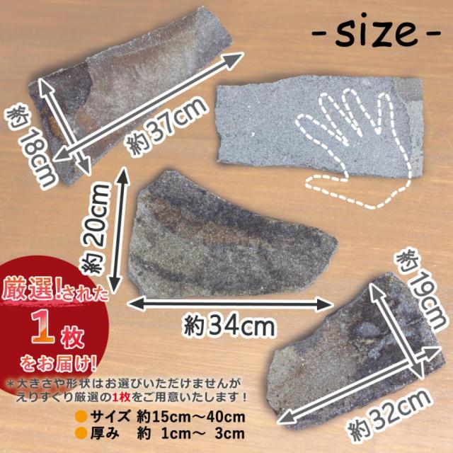 自然石形状のままです。寸法や厚み、色味のご指定は受け賜れません。