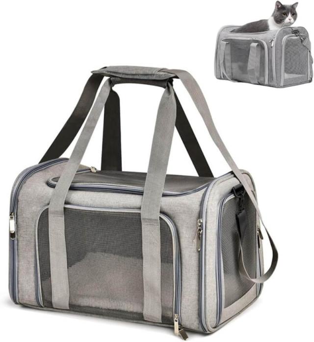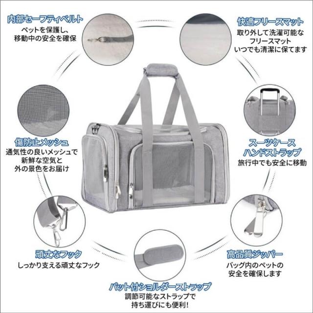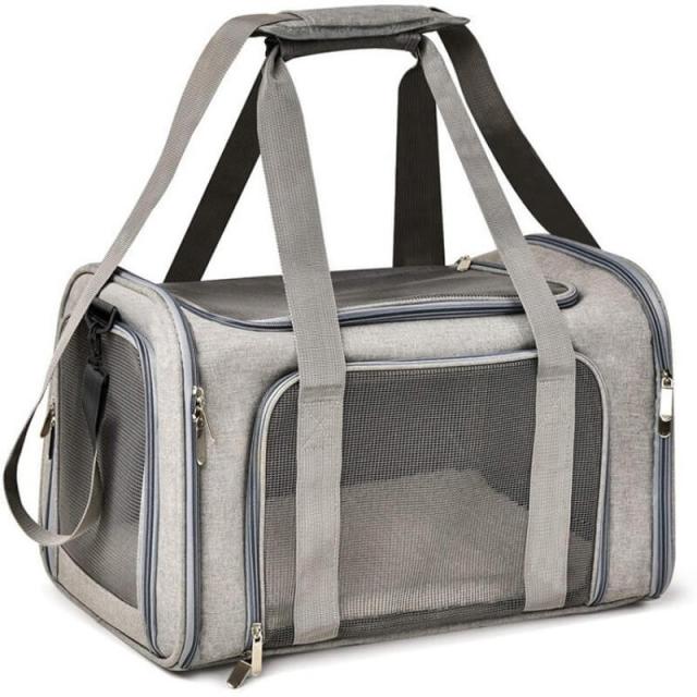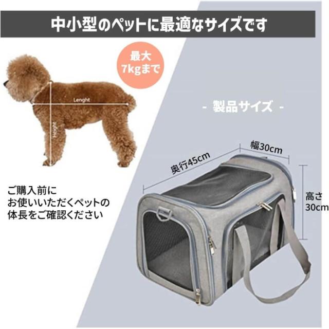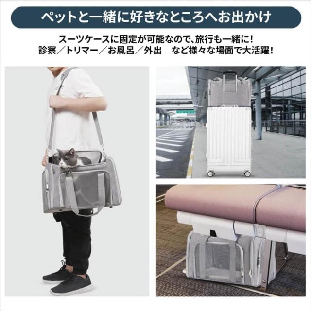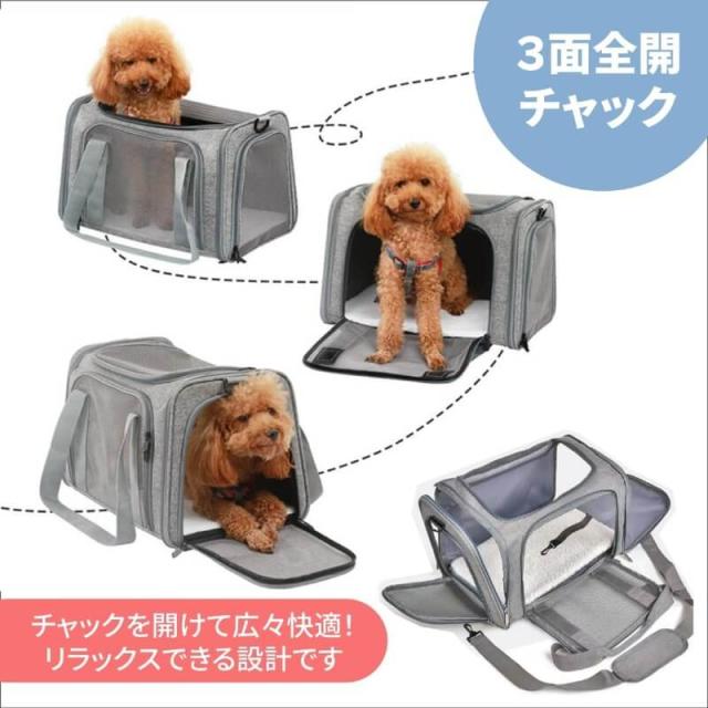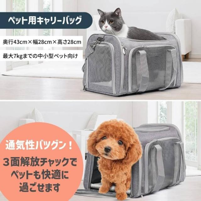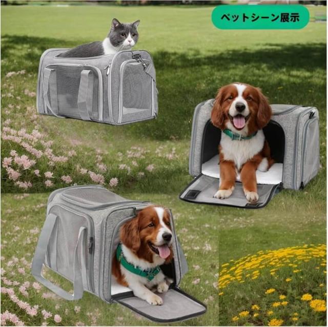ペットキャリーバック Lサイズ 犬猫用・小型犬 大型猫 折りたたみ式 飛び出し防止 お出かけ ベルト脱着可 ドライブ 旅行 通院 避難用 通気性 洗えるマット軽量 ベルト脱着可 大容量 耐荷重7Kg (グレー)