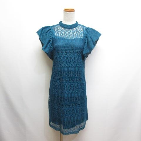 【中古】リリーブラウン Lily Brown 総レース 半袖 ワンピース フレアスリーブ 0 グリーン 裏地付き レディース