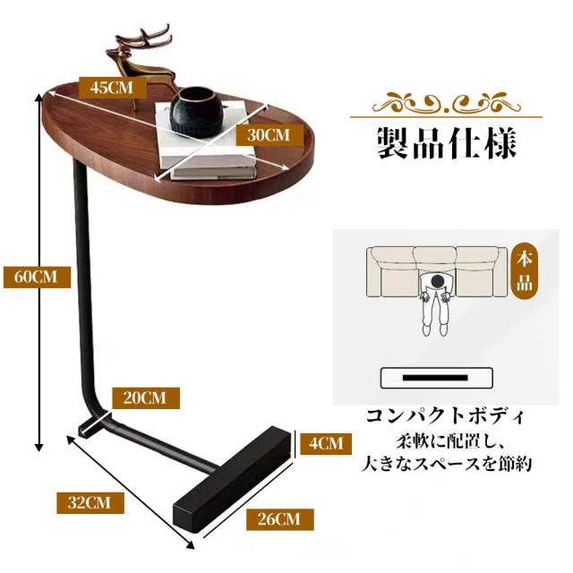【北欧のデザイン】天板の角が丸く加工されているので、角をが痛くて使いにくいといった心配はありません。ソファに差し込めるから、座りながらのティータイムも快適に過ごせる。ソファやベッド、テーブルの傍らに。いつもそばに置いておきたい、様々なシーンで役立つサイドテーブル。【省スペース】ちょっと物を置いておきたい…そんな思いもこれ一つでかなえられる。省スペースで持ち運びもしやすいので、あると活躍間違いなしのアイテムです。 商品の寸法:60cm x 32cm x26 cm