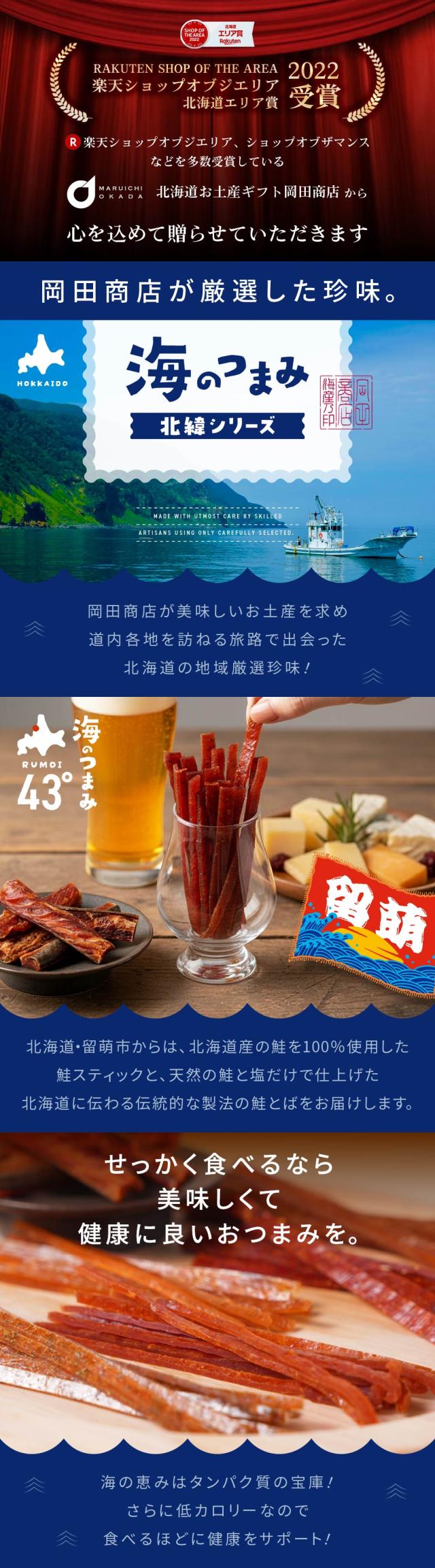 おつまみ 珍味 海のつまみ43°留萌—鮭明太子 32g×1個 ジャーキー 鮭とば 北海道 乾き物 国産 非常食 明太子 ビール おやつ ポイント消化 ご当地 バレンタイン ホワイトデー お返し