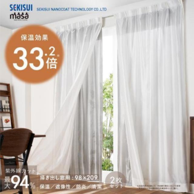 断熱サーモキープ masa 2枚組 セキスイ 保温カーテン あったかい 断熱 目隠し 冬 寒さ対策 節電カーテン 腰窓用 98×204 100×213