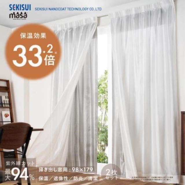 断熱サーモキープ masa 2枚組 セキスイ 保温カーテン あったかい 断熱 目隠し 冬 寒さ対策 節電カーテン 腰窓用 98×179 100×183