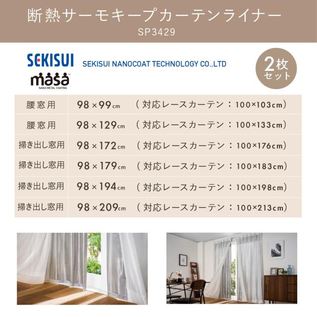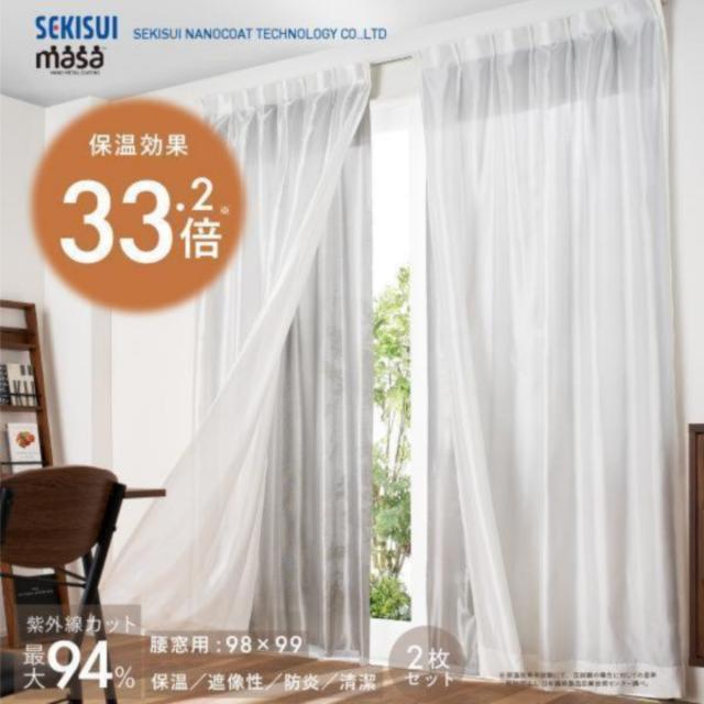 断熱サーモキープ masa 2枚組 セキスイ 保温カーテン あったかい 断熱 目隠し 冬 寒さ対策 節電カーテン 腰窓用 98×99 100×103