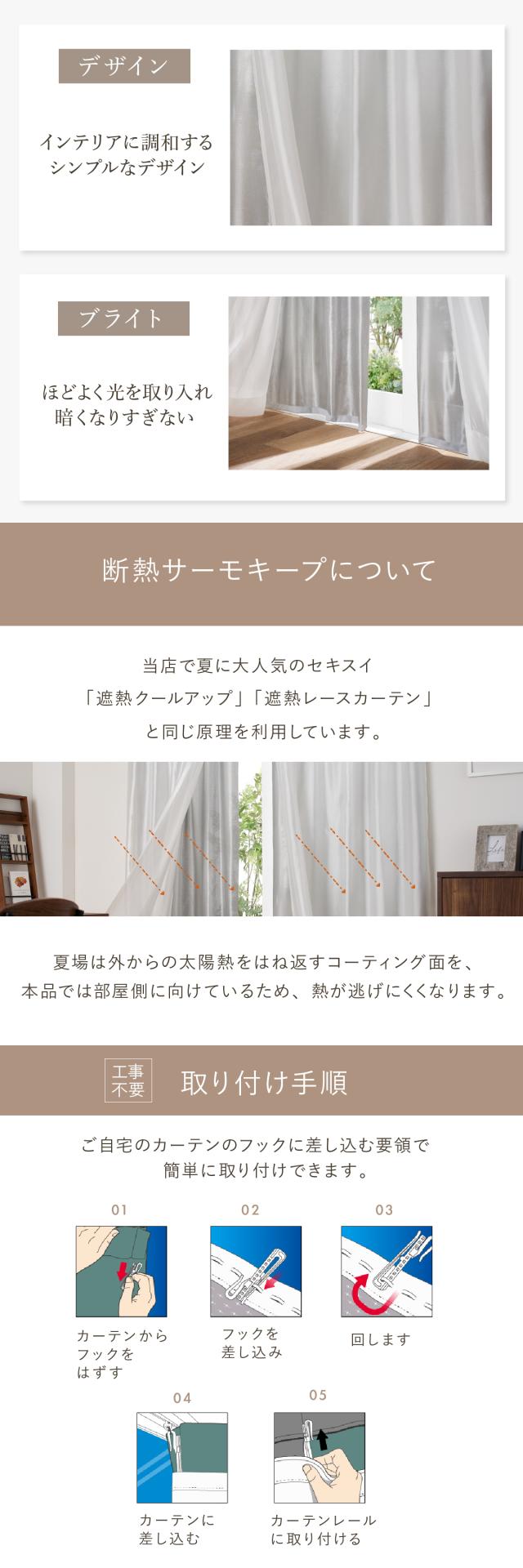 工具などは不要で、ご自宅のレースカーテンに簡単に取り付けることができます。
