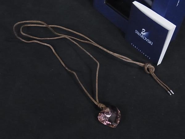 ■美品■ SWAROVSKI スワロフスキー ハート ネックレス ペンダント アクセサリー レディース ブラウン系×ピンク系 DI9360