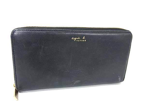 agnes b. アニエスベー レザー ラウンドファスナー 長財布 ウォレット 札入れ 小銭入れ レディース ブラック系 DJ1856