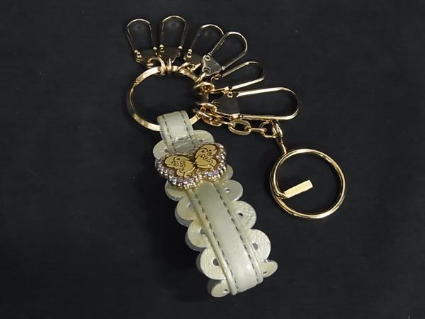 ■美品■ ANNASUI アナスイ 蝶 バタフライ パテントレザー キーホルダー キーリング バッグチャーム イエロー系×ゴールド系 DJ3318