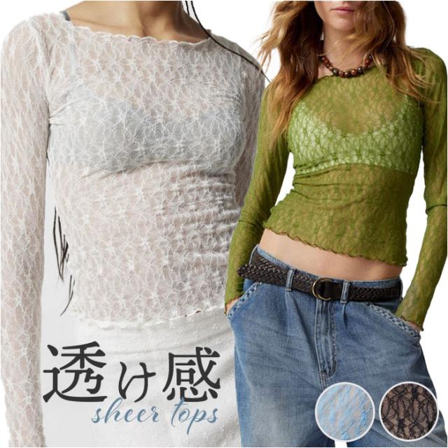 シアートップス 長袖 通販 トップス レディース レーストップス シアー シースルートップス 長そで ボートネック 春夏 レイヤード 重ね着 カットソー ロンt 薄手 透け感 春 夏 きれいめ おしゃれ オシャレ 可愛い かわいい レディースファッション