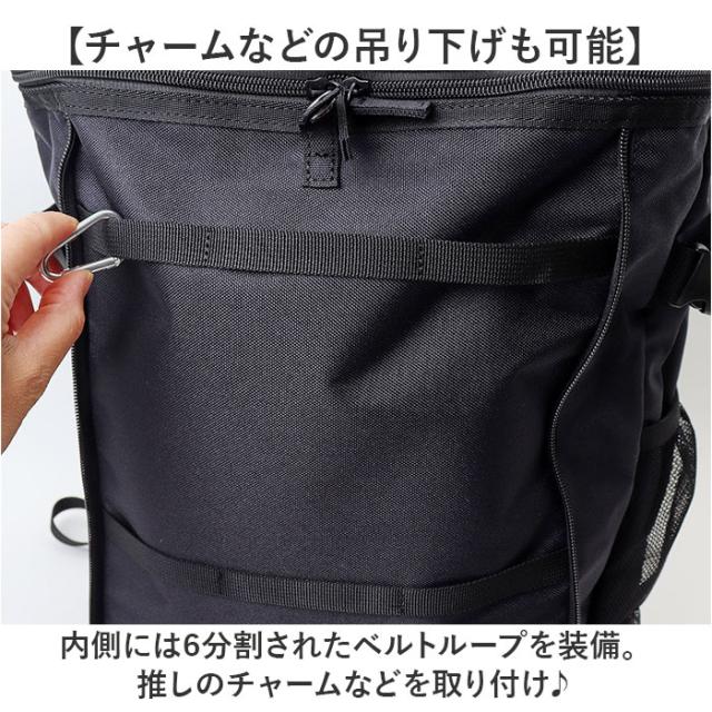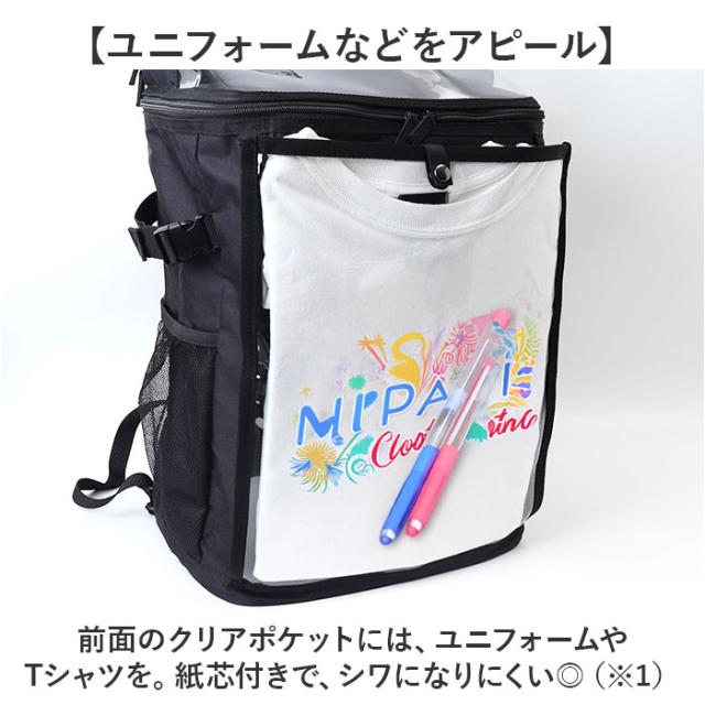 | 商品説明 | 【スポーツや推し活で大活躍☆】 ・推しグッズなどを見せて収納♪遠征などにもおすすめの「推し活リュック」。 【ユニフォームなどをアピール】 ・前面のクリアポケットには、ユニフォームやTシャツを。紙芯付きで、シワになりにくい◎ (※1)スナップボタン&両サイドファスナー式のポケットです。 【チャームなどの吊り下げも可能】 ・内側には6分割されたベルトループを装備。推しのチャームなどを取り付け♪ 【キャップやマスコットをIN】 ・上部のクリアポケットは立体型。キャップやマスコットのフォルムを崩さず雨に濡れる心配もなし! (※2)ダブルファスナー式ポケットです。 【ガバっと開いて出し入れスムーズ】 ・メインルームは、左右どちらからも開くダブルファスナー式。取り出しやすいボックス型。 【B4対応でノートPCも持ち運び】 ・B4がすっぽり、マチもたっぷりで頼れる収納力!ノートPCやタブレットが入るポケット付き。 (※3)クッションポケットの横幅は、A4がすっぽり収まるサイズ感です。上部はポケットから飛び出します。 【サクッと取り出せて迷子知らず】 ・メイン内側上部と、外側サイドにポケットを配置。背面シークレットポケットは貴重品収納に。 (※4)ポケットの他、ショルダー部分にDカン付きです。 【使い方自在なバックルベルト】 ・カラビナやラバーバンドを取り付け。メッシュポケットに入れた収納物のホールドにも! 【負担をかけず背負い心地快適】 ・背面とショルダーベルトに、クッションをプラス。ムレにくいメッシュ仕様。 【アクティブに動くシーンでも安心】 ・ズリ落ちを防ぐチェストベルト。ワンタッチで装着でき、位置は調整可能。 【色んなシーンで使えて万能】 ・スポーツ観戦やクラブ活動に。推しのライブやフェスでも使えるアイテム☆ 【ポケット仕様】 ・内側:クッションポケット×1、ファスナー式メッシュポケット×1(天井部分) ・前面:上部スナップボタン&両サイドファスナー式クリアポケット×1(内側にベルトループ×6) ・上部:ダブルファスナー式クリアポケット×1 ・サイド:メッシュポケット×2 ・背面:シークレットポケット×1 |