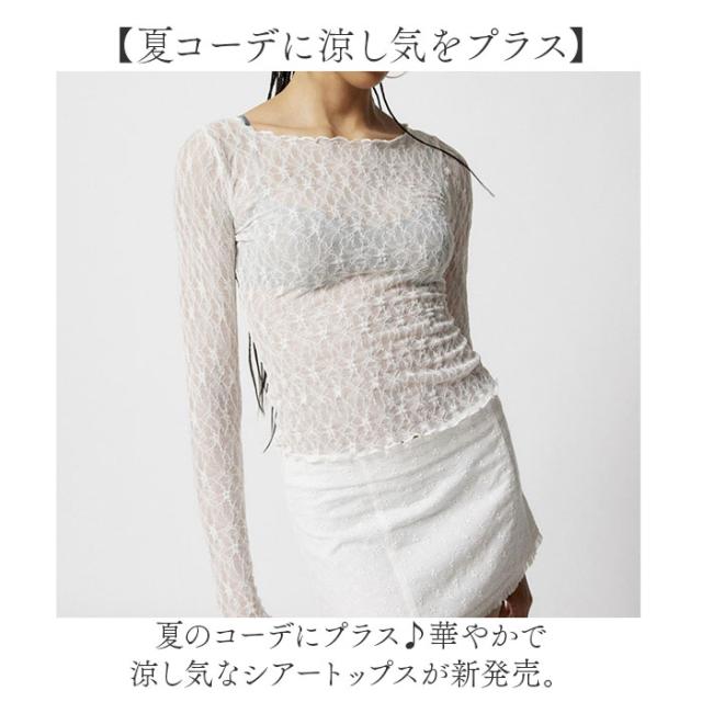 シアートップス 長袖 通販 トップス レディース レーストップス シアー シースルートップス 長そで ボートネック 春夏 レイヤード 重ね着 カットソー ロンt 薄手 透け感 春 夏 きれいめ おしゃれ オシャレ 可愛い かわいい レディースファッション