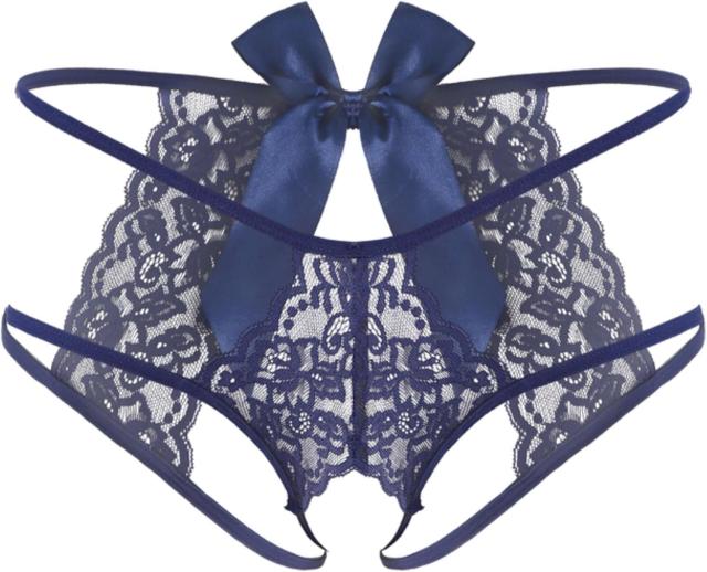 セクシー 2ライン リボン 見せパン ★ レディース ランジェリー レース パンティ パンツ ショーツ 紐パン 下着 紺 M54-a1