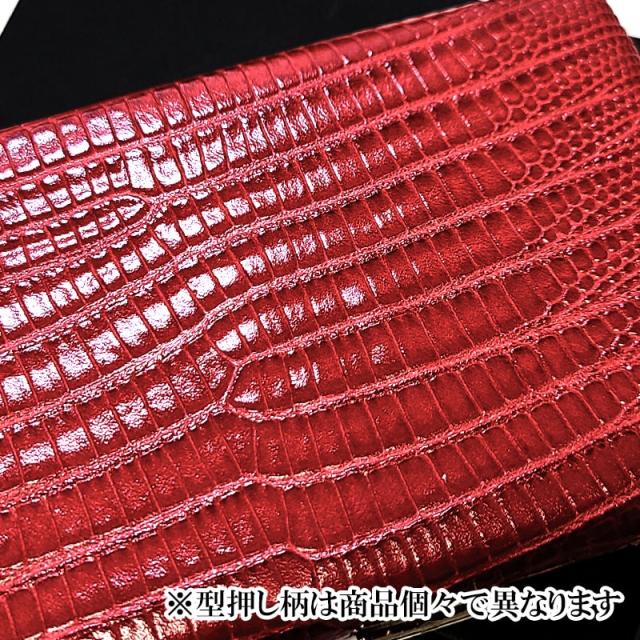 シガレットケース コスモス 本革リザード レッド 革貼り 赤 レザー 型押し タバコケース 薄型 100mm/70mm対応 日本製 坪田パール ギフト プレゼント 真鍮 メンズ レディース